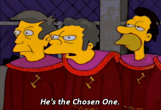 He's the Chosen One. You are the Chosen One... whom the sacred parchment prophesied would lead us to glory. Now to the top of Mount Springfield for the coronation. Remove the Stone of Shame. Whoo-hoo!
