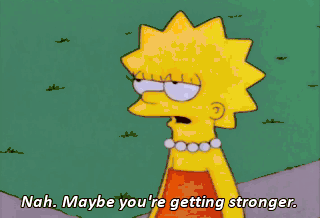 Nah. Maybe you're getting stronger. Well, I have been eating more. Wave bye-bye to our house, Maggie. Bye-bye, tree. Bye-bye, job. Bye-bye, toothbrush. Bye-bye, Lisa Simpson.