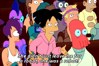 She didn't just leave me for a robot, she was a robot! (ALL GASP) (EXCLAIMS) Oh, God, her name wasn't Eunice, it was Unit!