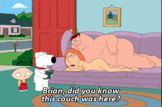 Brian, did you know this couch was here? It's so comfortable. Hey, Lois, look how short Stewie is.
