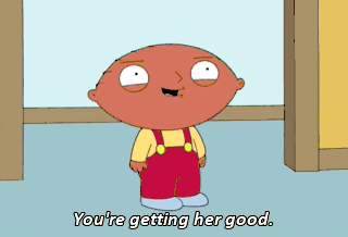 You're getting her good. Hey, Stewie. Nice sunburn. You horse's ass!