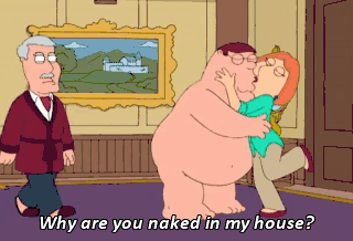 Why are you naked in my house? Why aren't you? You're all right, Griffin.