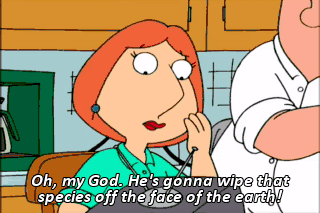 Oh, my God. He's gonna wipe that species off the face of the earth! No, No, Lois. The janitor'll do that.