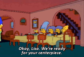 Okay, Lisa. We're ready for your centerpiece. Lisa ! My goodness ! That's very impressive ! Holy moly, that's the biggest... one of those I ever saw !