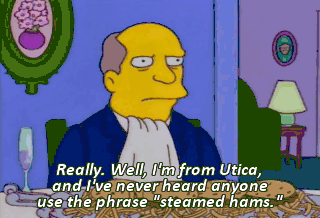 Really. Well, I'm from Utica, and I've never heard anyone use the phrase "steamed hams."