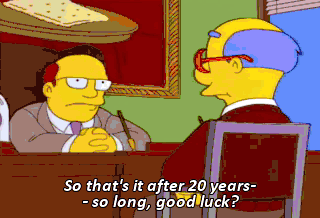So that's it after 20 years-- so long, good luck? I don't recall saying "good luck." And the winner of the Milhouse 500 is Milhouse! Milhouse, are you sure you want to drive that inside?