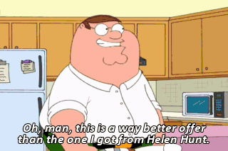 Oh, man, this is a way better offer than the one I got from Helen Hunt. You wanna have sex? No. No, no, no, no, no. No. No. Peter, you should really slow down.