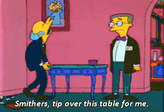 - Smithers, tip over this table for me. - Yes, sir. Homer. Homer. Make them stop.