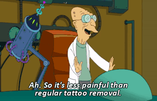 Ah. So it's less painful than regular tattoo removal. Nobody said that. (SCREAMS)