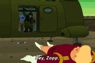 - Hey, Zapp. - Huh? Leela! Leela. So it's you I've been attracted to. Oh, God, I've never been so happy to be beaten up by a woman. Let's do it again sometime. The elders tell of a young ball much like you.