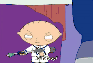 It's a boy! Hey, Anybody seen Stewie? Yeah. Where is the birthday boy? Victory is mine! Yes. And this cake is yours, too. Hey, Stewie, make a wish.