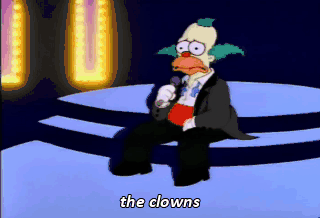 the clowns those daffy laughy clowns send in those soulful and doleful schmaltz-by-the-bowlful clowNs