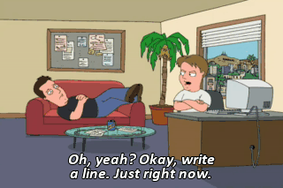 Oh, yeah? Okay, write a line. Just right now. - Just pitch me a line right now. - Okay.