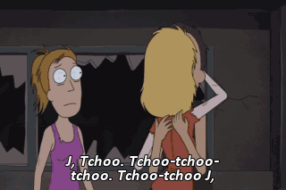 J, Tchoo. Tchoo-tchoo-tchoo. Tchoo-tchoo J,