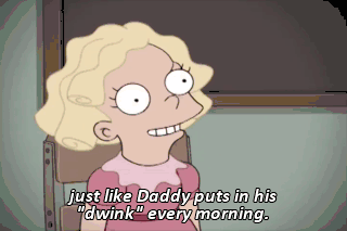 just like Daddy puts in his "dwink" every morning. And then he gets mad.