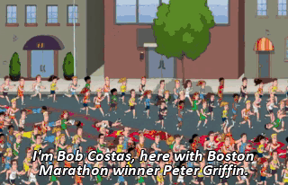 I'm Bob Costas, here with Boston Marathon winner Peter Griffin.
