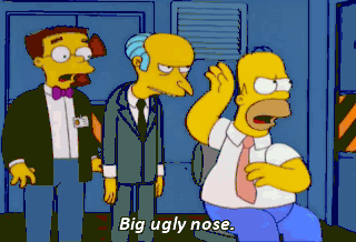 Big ugly nose. Bald. Liver spot. Liver spot. Hmm. Turn around, Simpson. No! I can't get in trouble if I can't see you! I'm afraid he's got us, sir.