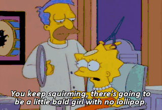 You keep squirming, there's going to be a little bald girl with no lollipop. I love it.