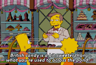 British candy is a bit sweeter than what you're used to across the pond. Look, teabag, just fork over the brown. BOTH: Mmm! (UPBEAT MUSIC PLAYING)