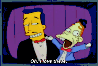Oh, I love these. I can't believe it. He stole this bit from Krusty! Yeah, well, Krusty stole it from Steve Allen. Oh, everything's stolen nowadays.