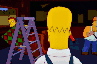 Hey, Homer. You dirty teen! Ow! Hey, Homer, stop! Stop! It's me! Sheesh! Moe... wrecking Moe's bar? Uh-- What are--