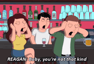 REAGAN: Baby, you're not that kind Don't go breaking my heart (HIGH-PITCHED FEEDBACK) REAGAN: You take the weight off of me Oh, honey, when I knock on your door... (HIGH-PITCHED FEEDBACK) Oh, I give you my...