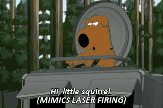 Hi, little squirrel. (MIMICS LASER FIRING) Ooh!