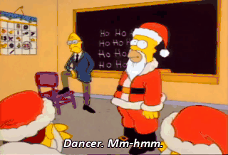 Dancer. Mm-hmm. Prancer. Mm-hmm. Nixon. Comet and... Cupid. Donna Dixon ? Sit down, Simpson. And what would you like, little boy ? You're not really Santa, tubby. Why, you little egghead !