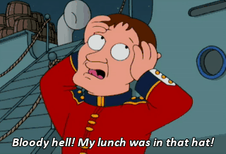 Bloody hell! My lunch was in that hat!