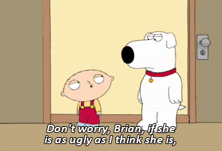 Don't worry, Brian, if she is as ugly as I think she is, I'll look at her once, and then I'll go... (IMITATING RETCHING) All over the place. Then you'll wipe it up. and then we will go.
