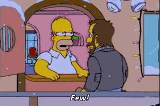 Eew! Oh, for the love of puppies. Homer, you're the nicest guy in town. Ha-ha! Your position has been usurped. Usurped. You heard me. Ha-ha! (CHANTING) You're sad at Christmas.