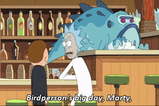Birdperson's big day, Marty, was at Blood Ridge on Glapflap's third moon against the Gromflamites! This? This is a losing battle. Geez, Rick, it's not like he's dying. He's getting married!