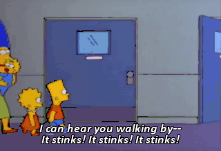 I can hear you walking by-- It stinks! It stinks! It stinks! Yes, Mr. Sherman. Everything stinks.