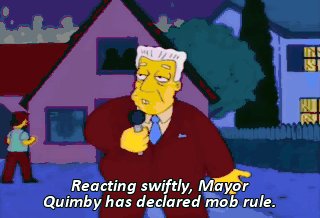 Reacting swiftly, Mayor Quimby has declared mob rule.