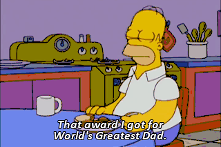 That award I got for World's Greatest Dad. Dad, you bought that because it was full of gummy worms. And you only wanted those as bait to catch gummy fish. Which I did.