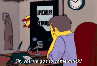 Sir, you've got to come quick! There's a dog runnin' around in the air ducts! I understand. Children, this is Principal Skinner. Remain calm. There is a dog in the vents.