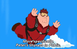 More specifically, Peter's Shyness In Public. O, Great Spirit, why do I hold myself back in such a... Oh, fuck! The cock-sucking ground. (GROANS) Damn it.