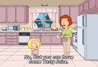 No, but you can have some Tasty Juice. It has only one-third the sugar of soda. Mmm. Delicious. Thanks, Mom. (WOMAN SINGING)