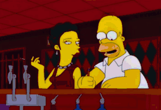 Hey, Moe! Can I pay with a drawing? Yeah. Nice try there, twelve step. Uh, Homer, you're making us a little bit uncomfortable. Relax, big guy. He's just doing this for his art. Right, Homer?