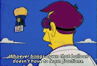 Whoever brings down that balloon doesn't have to learn fractions. Uh, careful, children. That's my car. Destroy that balloon. Aye.