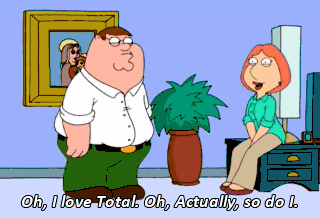 Oh, I love Total. Oh, Actually, so do I. And it's healthy for us, too. Oh, God! It's starting already! Lois, we are screwed.