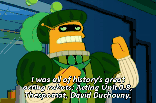 I was all of history's great acting robots: Acting Unit 0.8, Thespomat, David Duchovny. Look, are you the original were-car or not?