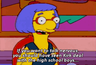 If you want to talk nervous, you should have seen Kirk deal with the high school boys...