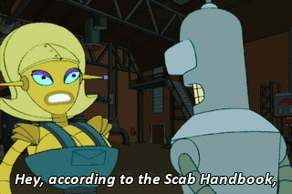 Hey, according to the Scab Handbook, that's extremely inappropriate banter. And that's just the way I like it. Haile H. Selassie! There, little friend. Good as new.