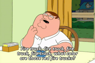 Fire truck, fire truck, fire truck, fire truck, what color are those red fire trucks?