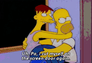 Uh, Pa, I cut myself on the screen door again. Why, you cotton-pickin'-- Hey! No. I gotta pass this class for my kids.