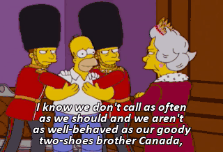 I know we don't call as often as we should and we aren't as well-behaved as our goody two-shoes brother Canada,