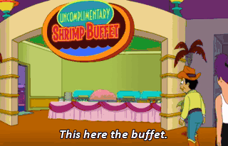 This here the buffet. Ooh! Perfect timing! It's the weekly changing of the shrimp!