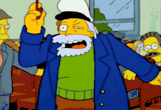 I'd like to hear from Sideshow Mel. I'll see to it that Mr. Burns suffers the infernal machinations... - of hell's grim tyrant. - Yeah!