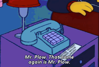 Mr. Plow. That name again is Mr. Plow. Hello, I'm calling from Delinquent Accounts at Kumatsu Motors. Oh, you want the Mr. Plow who plows driveways. This is Tony Plow. You know, from Leave It to Beaver.